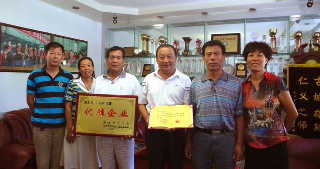 2009年8月12日上午,保定市總工會有關領導親臨我集團公司,為我集團公司頒發(fā)河北省“安康杯”競賽活動優(yōu)勝企業(yè)獎牌,為集團公司董事長張?zhí)m柱同志頒發(fā)全國“安康杯”競賽活動優(yōu)秀組織者證書。這是我集團公司繼榮獲河北省“AAA級勞動關系和諧單位”后,獲得的又一殊榮,標志著我集團公司安全管理工作邁上了新臺階。